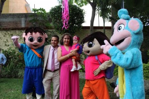 Después de la ceremonia, los invitados y la familia convivieron en un agradable desayuno, en el que se presentaron para todos los niños los personajes de «Dora la Exploradora».