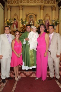 Foto: (De izquierda a derecha) Padrinos: José Rodolfo Osorio Villanueva y Lizeth López de Osorio, Sacerdote Francisco Ordaz Bohórquez, Padres: Blanca Azucena Osorio de Sifuentes y Carlos Sifuentes Bennetts.