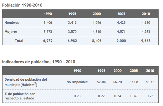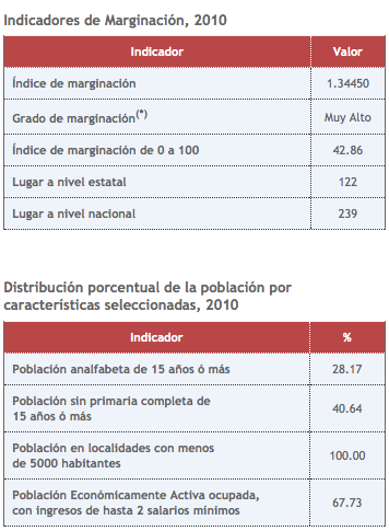 En 2010, este municipio contaba con  9,663 habitantes, en su mayoría indígenas que viven en condiciones de alta marginación, como puede observarse en las gráficas proporcionadas por el Sistema Nacional de Información Municipal (SNIM).