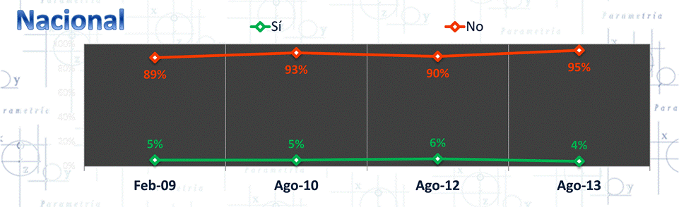 La entrevista se aplicó a 800 personas mayores de 18 años con credencial para votar, que residen en el lugar de interés, a nivel nacional, del 10 al 15 de agosto de 2013, aplicada a través de la encuesta nacional en vivienda. Para consultar el reporte completo, da click a la siguiente liga de enlace.