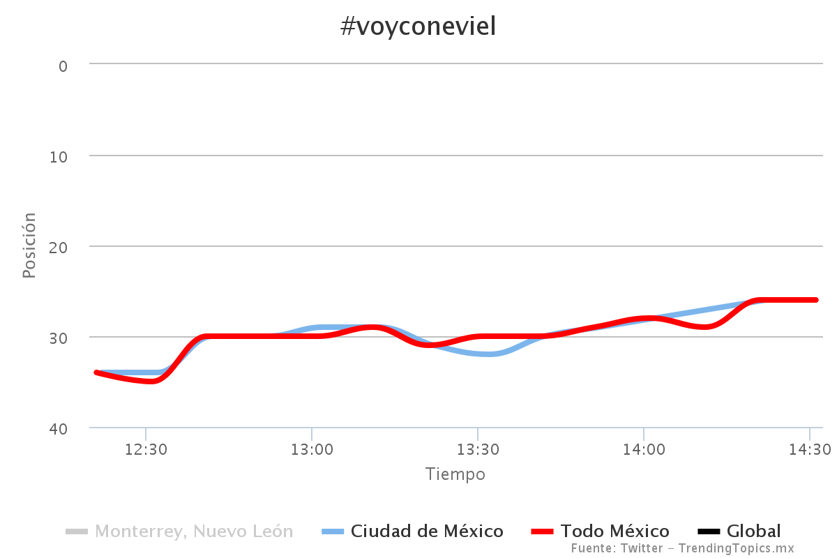 En breve tiempo, la etiqueta se convirtió en tendencia, llegando en algunos momentos a ocupar uno de los primeros treinta temas en todo México, como se muestra a continuación en imagen de trendingstopic:*