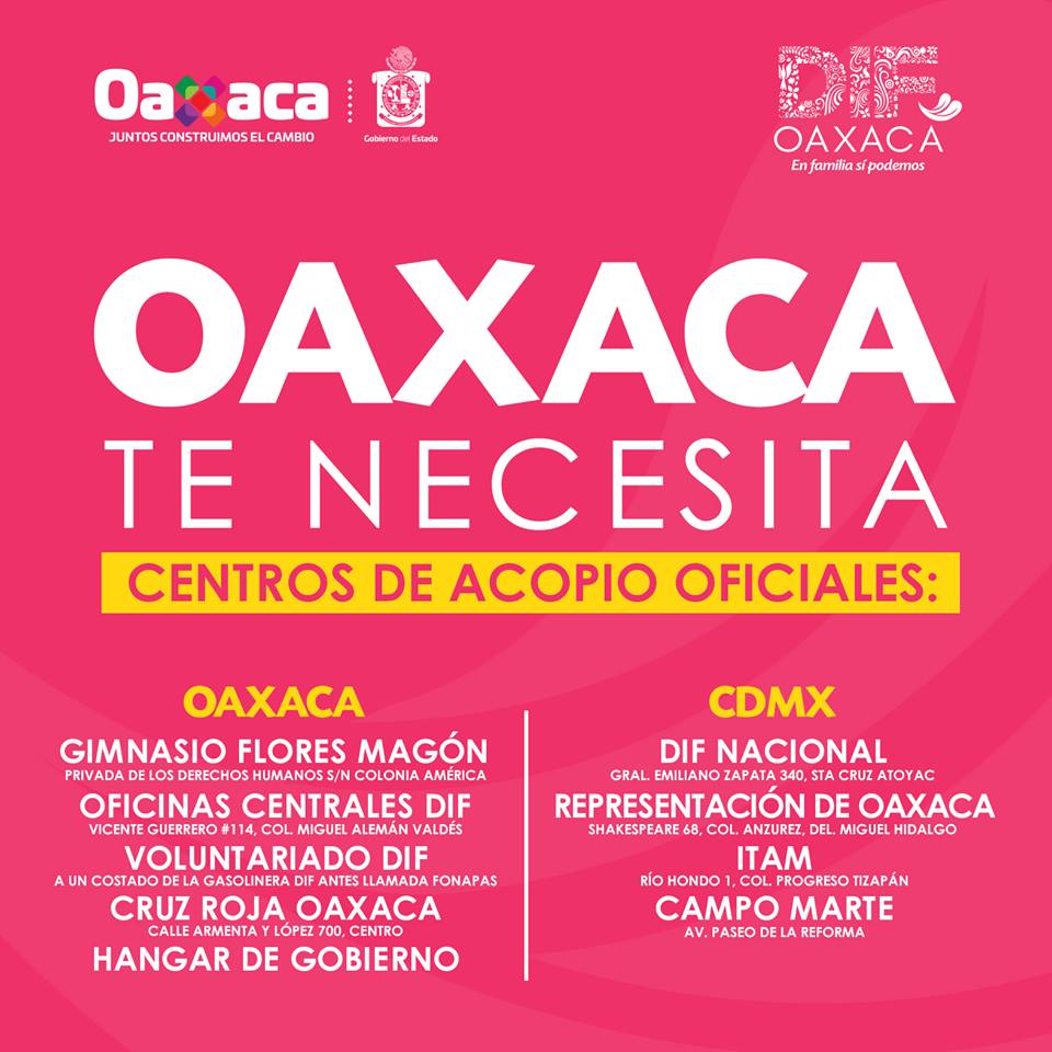 (www.eloriente.net, México. 8 de septiembre de 2017. Por: Jessica Lamadrid).- Tras los desastres naturales ocurridos en el estado, instituciones como el DIF Estatal y la Cruz Roja de Oaxaca han abierto centros de acopio para recibir donaciones con el fin de ayudar a los damnificados de los municipios afectados.
