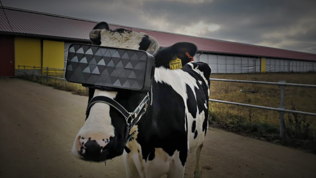 Con imágenes virtuales de campos en verano, se busca mejorar las condiciones de vida de las vacas y bajarles el estrés para que mejoren su producción láctea.
