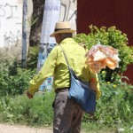 Este hombre caminaba a pleno sol, el pasado viernes, por rumbos de San Bartolo Coyotepec, previo a subir al...