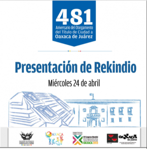 eloriente.net (Oaxaca, Oax.) 23 de abril de 2013.- En el marco del 481 Aniversario de la Ciudad de Oaxaca, celebrado el próximo 25 de abril, el Ayuntamiento de Oaxaca de Juárez a través de la Regiduría de Cultura, Deporte y Fomento Educativo invita a la Obra musical «Rekindio» este miércoles 24 de abril a las 20:00 hrs., en el Teatro Macedonio Alcalá.
