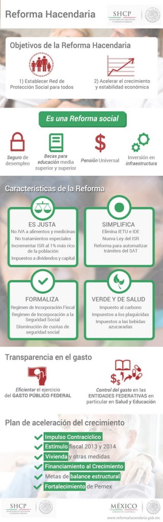 Después, el presidente Enrique Peña Nieto ofreció un mensaje desde la residencia oficial de Los Pinos para explicar los objetivos y elementos de lo que llamó una Reforma Hacendaria de «carácter social».