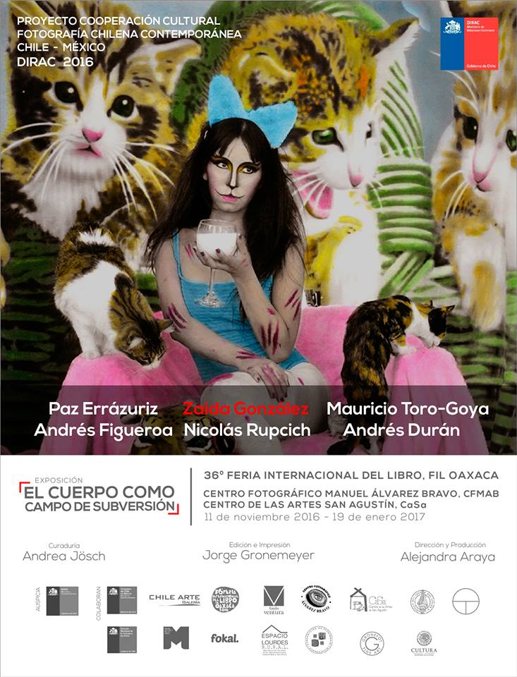 Como parte de la Feria Internacional del Libro de Oaxaca este sábado 12 realizará la inauguración de la exposición «El Cuerpo como Campo de Subversión», en el Centro Fotográfico Manuel Álvarez Bravo. Mostrando así la fotografía chilena contemporánea, además de ser un homenaje a Paz Errázuriz considerada una de las fotógrafas más destacadas de Chile.