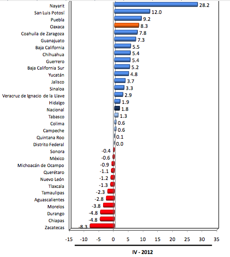 eloriente.net (Oaxaca, Oax.) 28 de mayo de 2013.- Oaxaca mostró un incremento anual de 4.2% durante el cuarto trimestre de 2012 en el total...