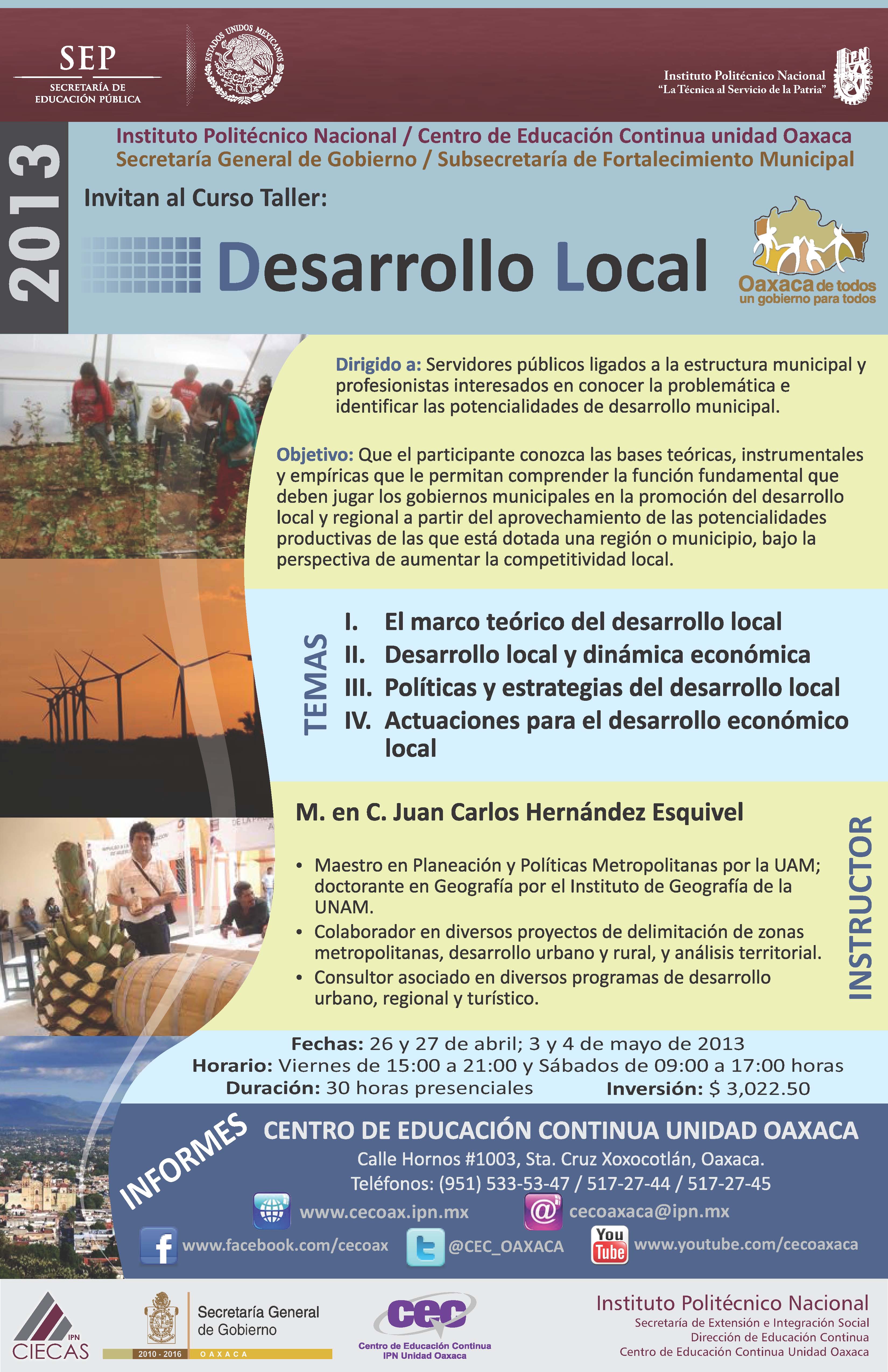 CEC Oaxaca del Instituto Politécnico Nacional impartirá «Taller de Desarrollo Local»